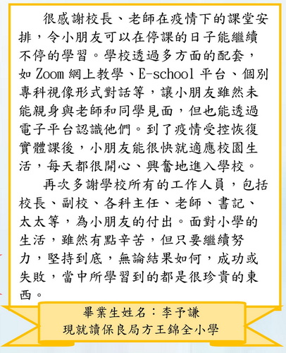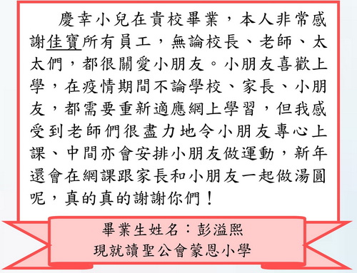 2020-2021 年度畢業生升學近況(家長心聲)-建生分校