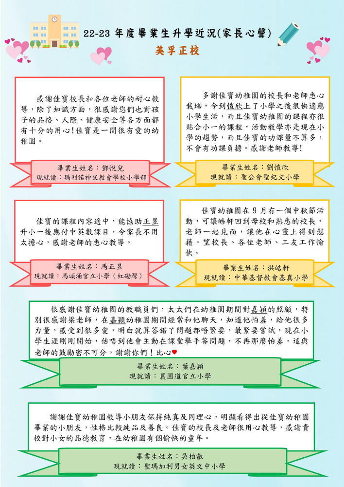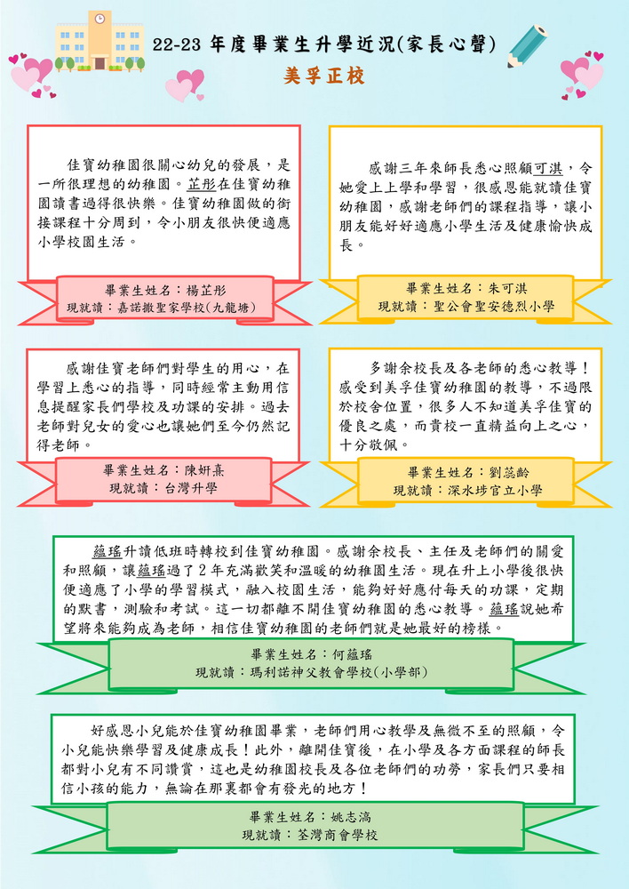 2022-2023 年度畢業生升學近況(家長心聲)-美孚正校