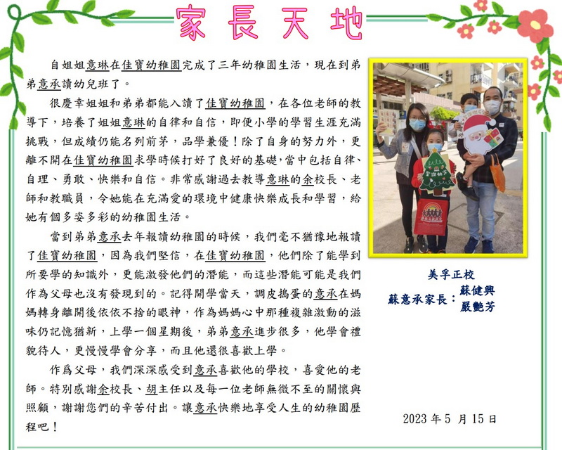 鄭穎桐,鄭穎駿,鄭穎芯 家長