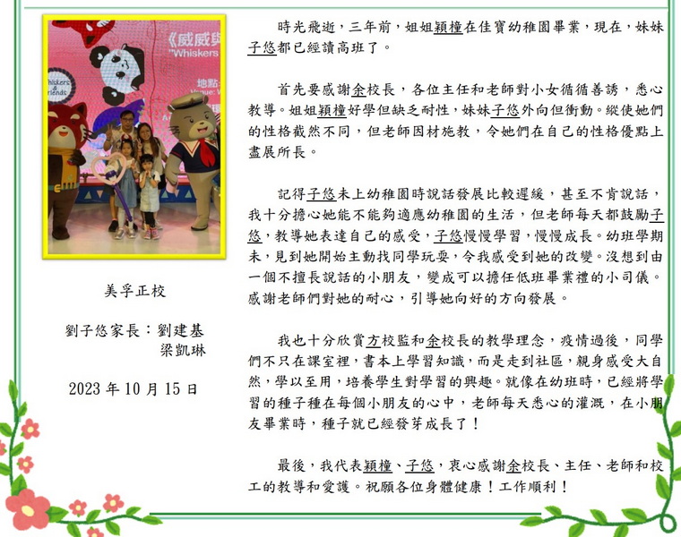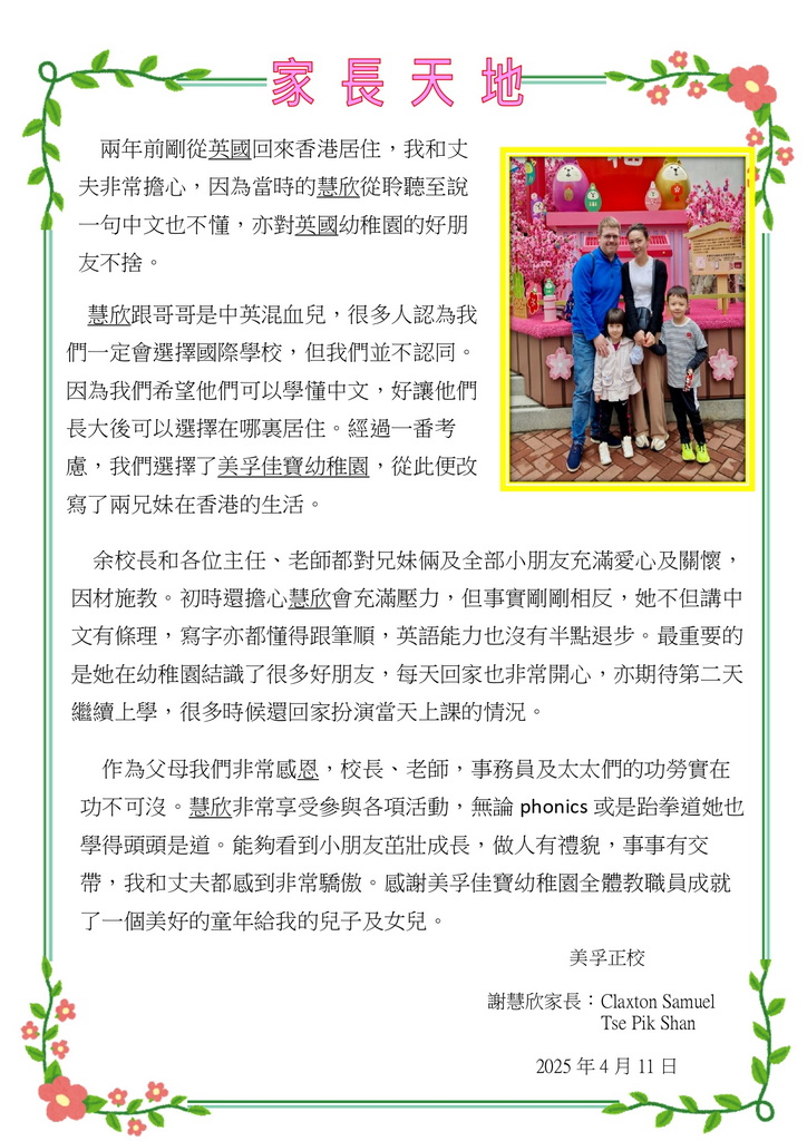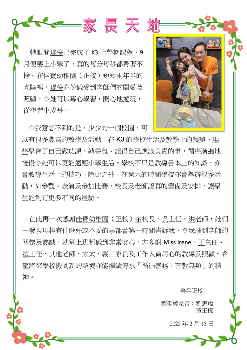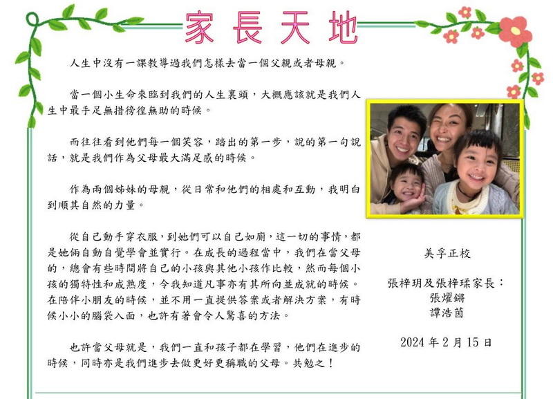 張梓玥及張梓瑈家長