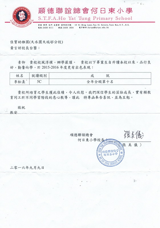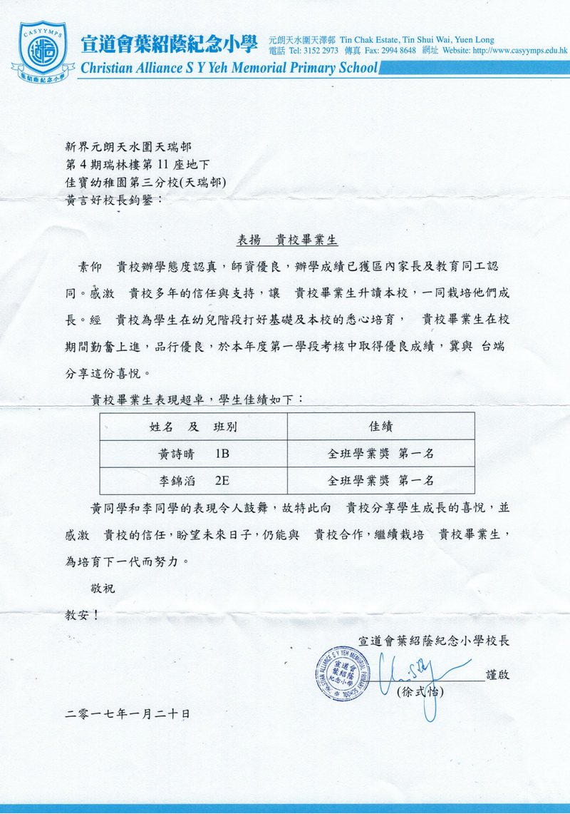 宣導會葉紹蔭紀念小學-黃詩晴、李錦滔