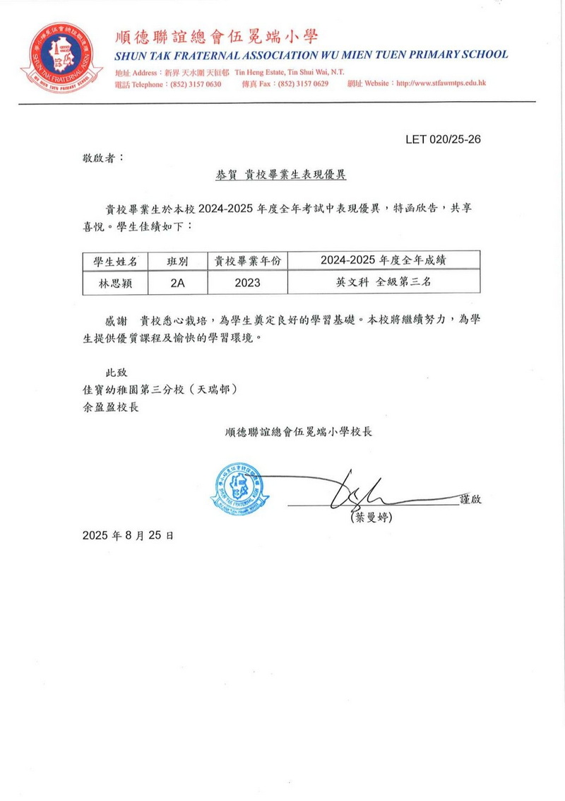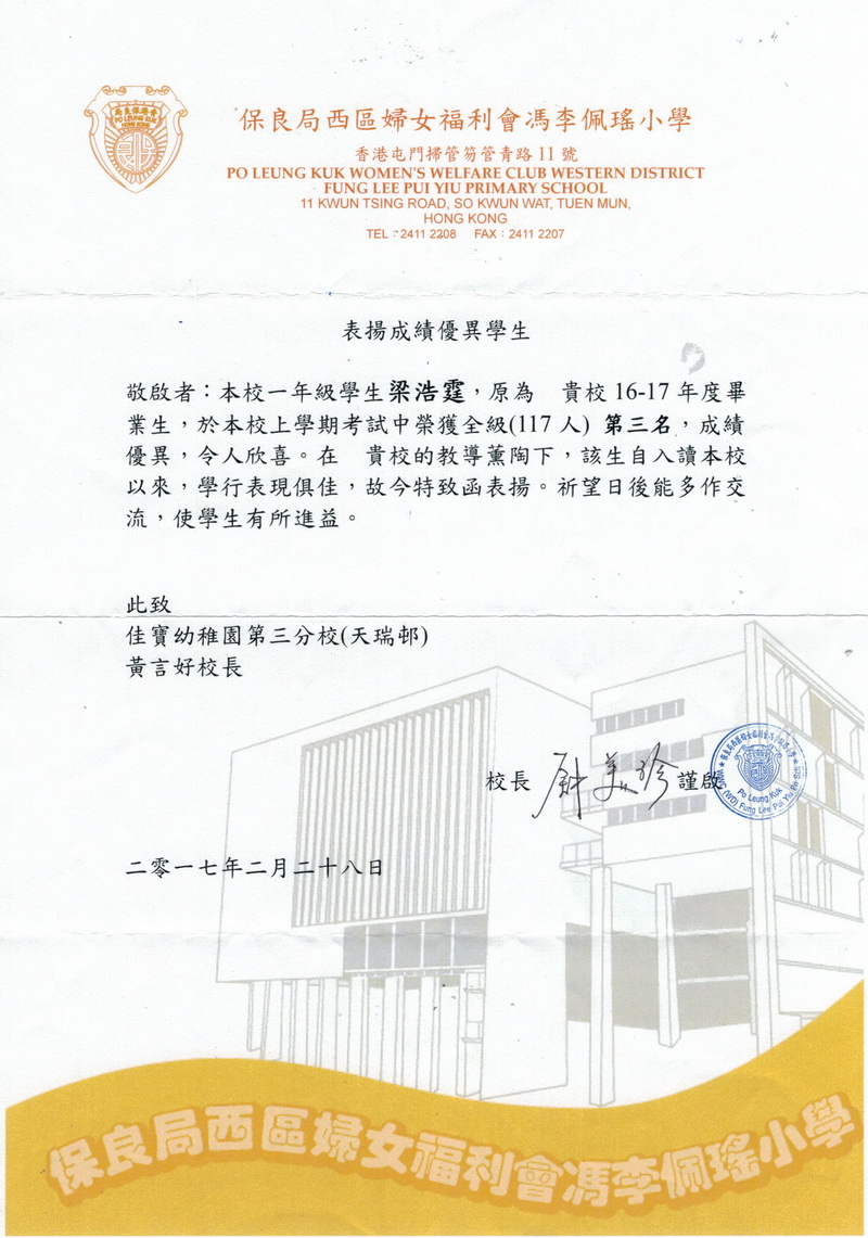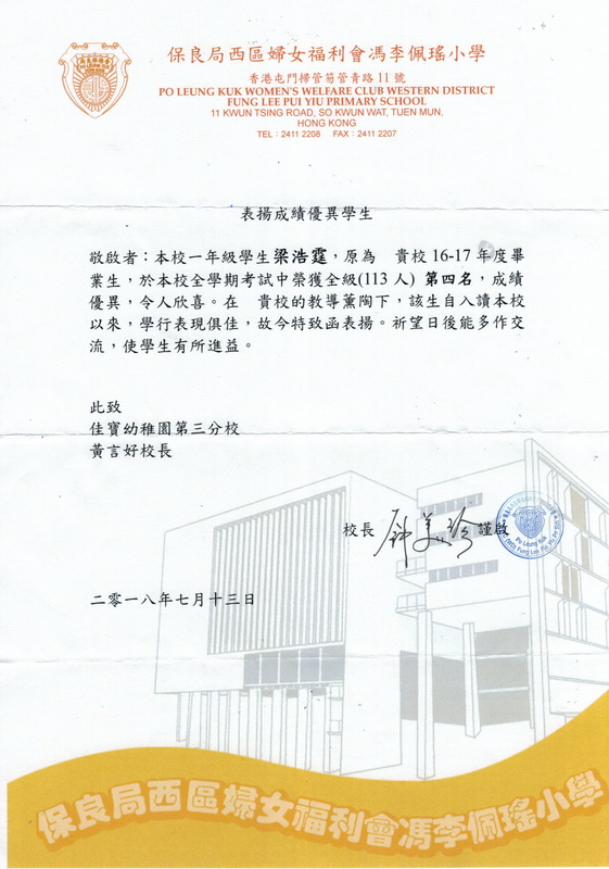 保良局西區婦女福利會馮李佩瑤小學 - 梁浩霆